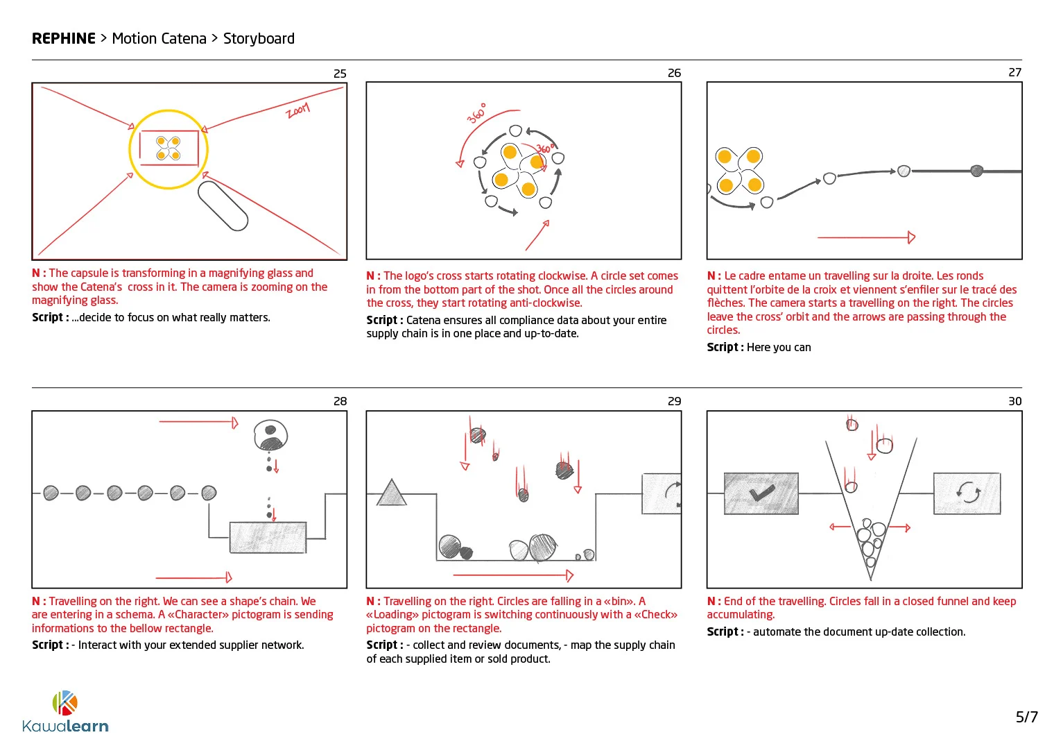 Après une phase d’aller-retour sur le texte, les intentions et la voix-off, nous rédigeons un script validé par le client. Ce sera la base de travail du storyboard.